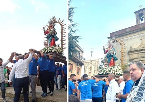 Nel pomeriggio, il simulacro della Madonna, adornata con gioielli e corone per l'occasione, è posto su una “vara”, abbellita da una raggiera dorata, e viene portato a spalla in processione; è un momento di intensa spiritualità e devozione, con la comunità che si raccoglie attorno alla Madonna del Soccorso, per affidarle suppliche e speranze.